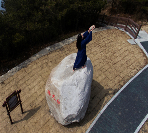 3月7日,久雨短晴,天岳幕阜山景區內的道地藥材“天岳黃精”選苗育苗基地迫不及待進行疏浚積水。勞作之余,查看天氣預報即將雨過天晴,正值“三八節”來臨之際,大家便在“補天臺”景點自導自演了一場“女媧補天”的情景表演,現場游客見狀開玩笑:“天止漏啦!”。