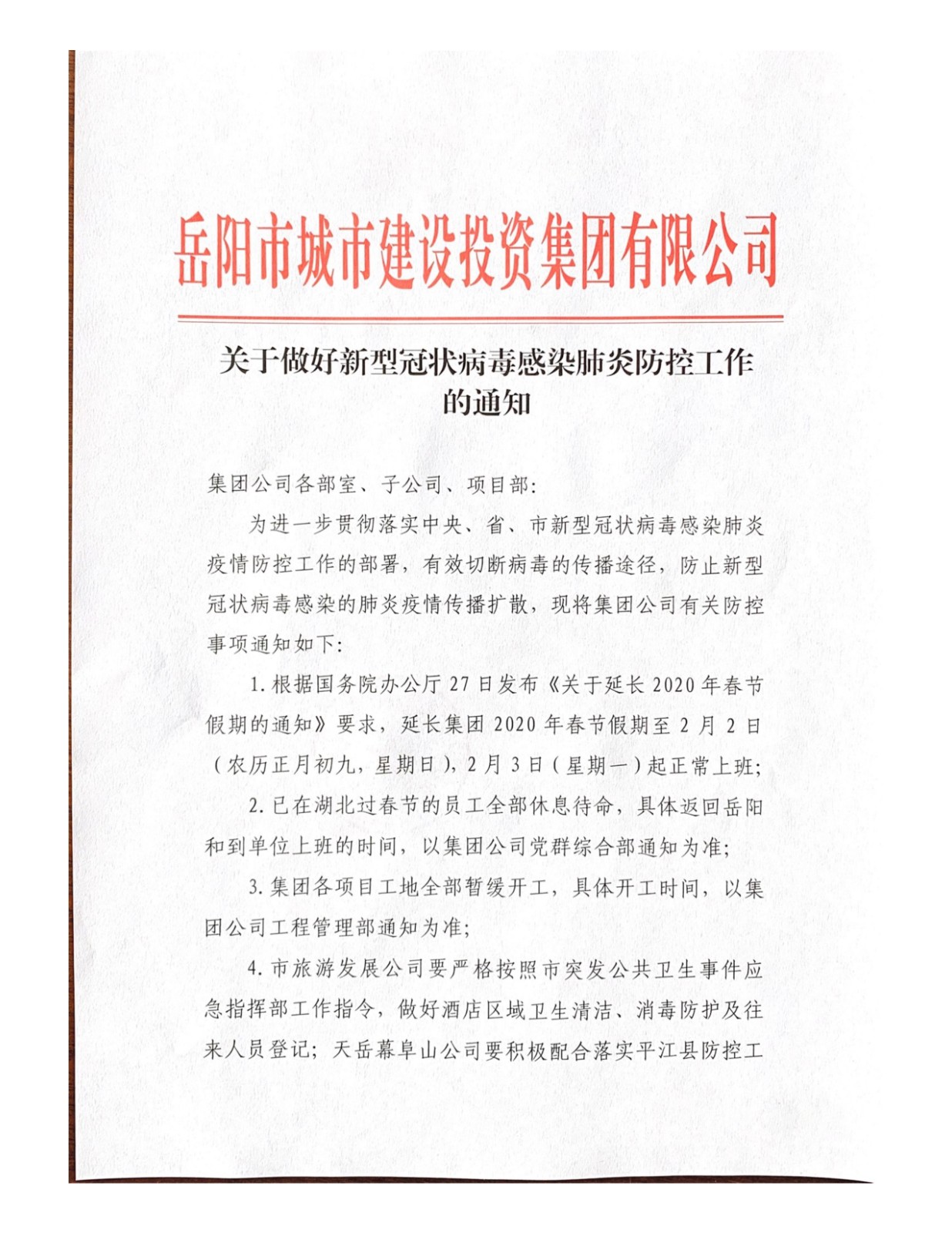 關于做好新型冠狀病毒感染肺炎防控工作的通知